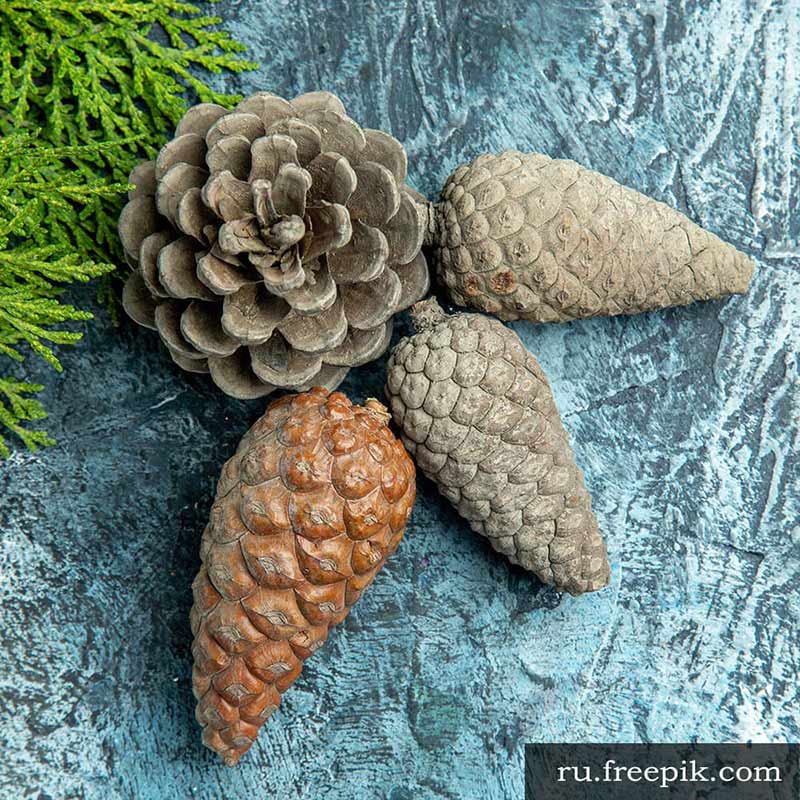 Для поделок надо брать хорошо просушенные и очищенные шишки. Главное правило: никаких плесневых пятен, повреждений или мягкости (иначе рискуете получить горстку трухи через неделю).