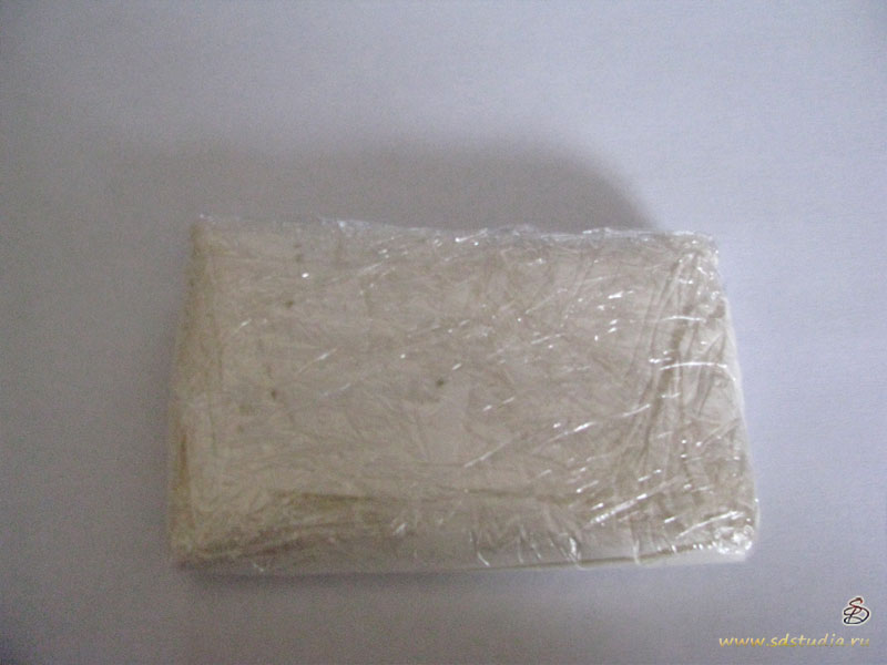 Любовь японцев к упаковке известна всем. Тут их любовь проявилась в полной мере. Кроме внешней упаковки сам брикет пластики надежно замотан в прозрачную пленку, что предохраняет ее от пересыхания. Сделано это не случайно. Глина Modena очень нежная и действительно подвержена быстрому высыханию. Поэтому открытую пачку надо хранить в герметичной упаковке, лучше всего для этого использовать пищевую пленку.