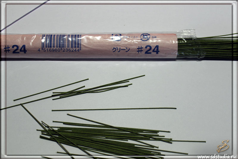Беру самую тонкую флористическую проволоку и режу ее кусачками или ножницами на небольшие кусочки по 7-8см. Это ножки будущих ягодок и листиков.