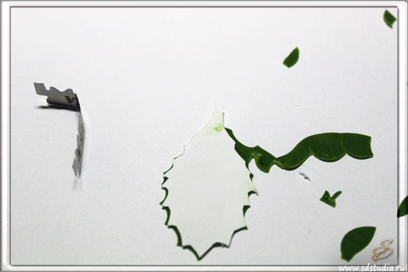 Почему не желательно использовать ножницы? Потому что при такой толщине листочка очень велика вероятность просто порвать его в процессе вырезания. Лезвие в этом случае позволяет действовать более осторожно. И вырезы в листе получаются более тонкие, аккуратные.