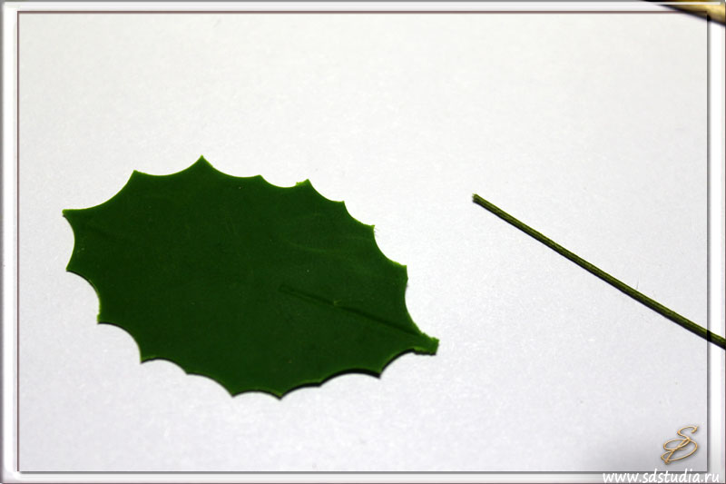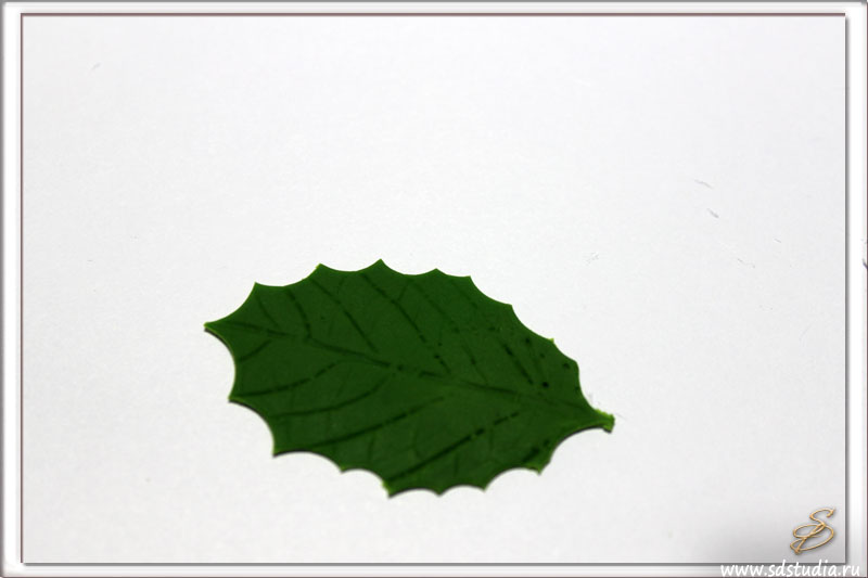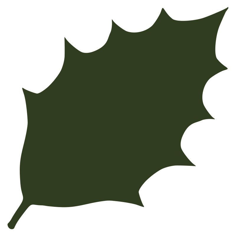 - Бумажный шаблон листа падуба (острорлиста) из картона или блотной бумаги;