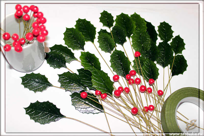 Остролист (падуб) - очень нарядное растение, которое у многих народов мира принято использовать для украшения своих домов на новый год и рождество. С использованием современных материалов такую нарядную веточку можно сделать своими руками.