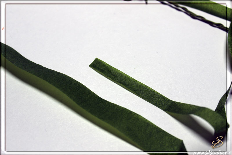 - Флористическая тейп-лента бумажная зеленого цвета;