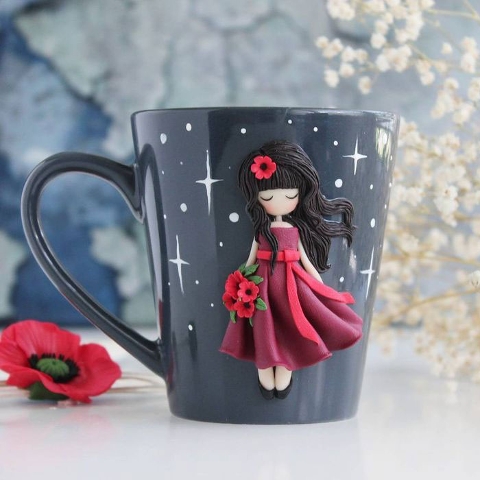 Декор из полимерной глины для посуды: ложки, чашки, бокалы