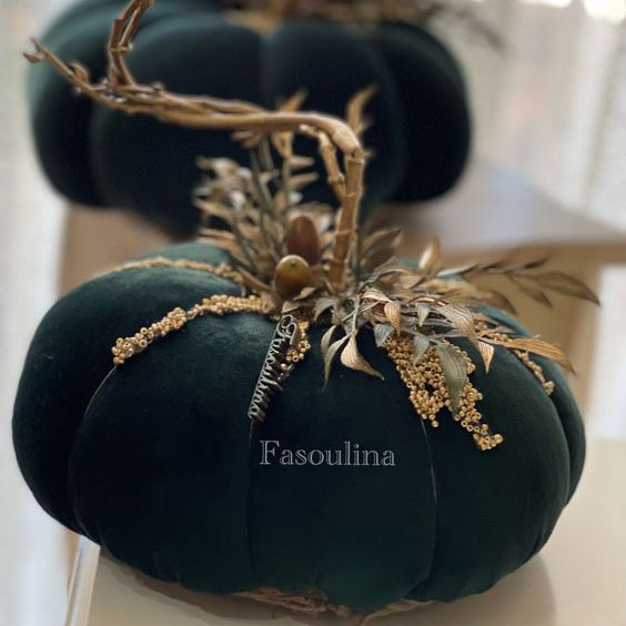 Текстильные тыквы просты в изготовлении, делаются быстро и придают помещению особый уют, потому что выглядят «теплыми». Ткань можно подобрать с любым узором и любой фактуры. В своих поисках я встречала тыквы из хлопковых и льняных тканей, из трикотажа, и даже из бархата. Кстати, тыквы из бархата выглядят по особенному «богато» и изящно, особенно с соответствующим декором.