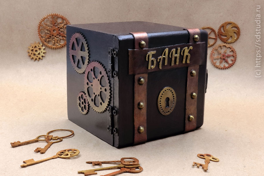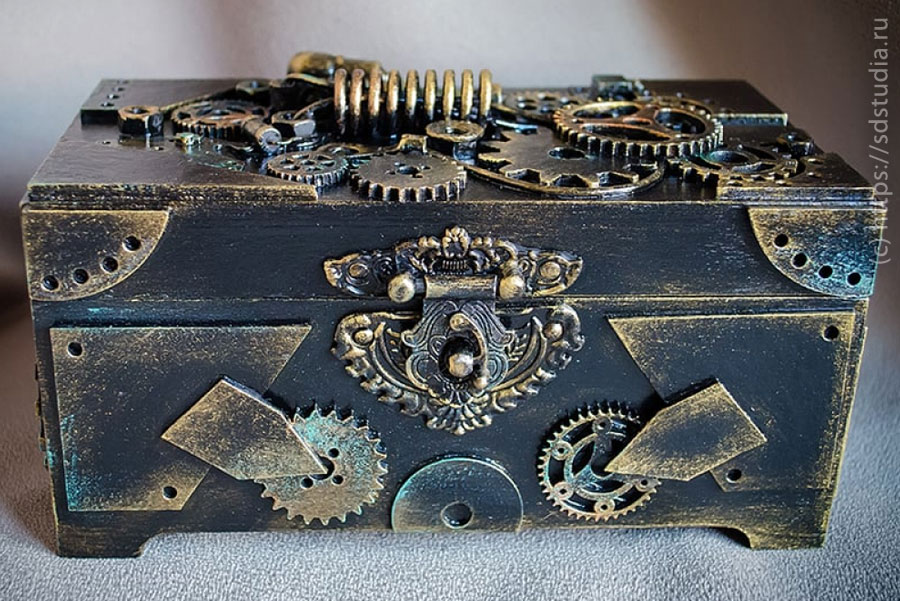 Стимпанк – стиль, основывающийся на научной фантастике. В этом стиле преобладает объемный декор в виде шестеренок, кусков металла, клепок. Используется сложное окрашивание и колорирование «под металл».