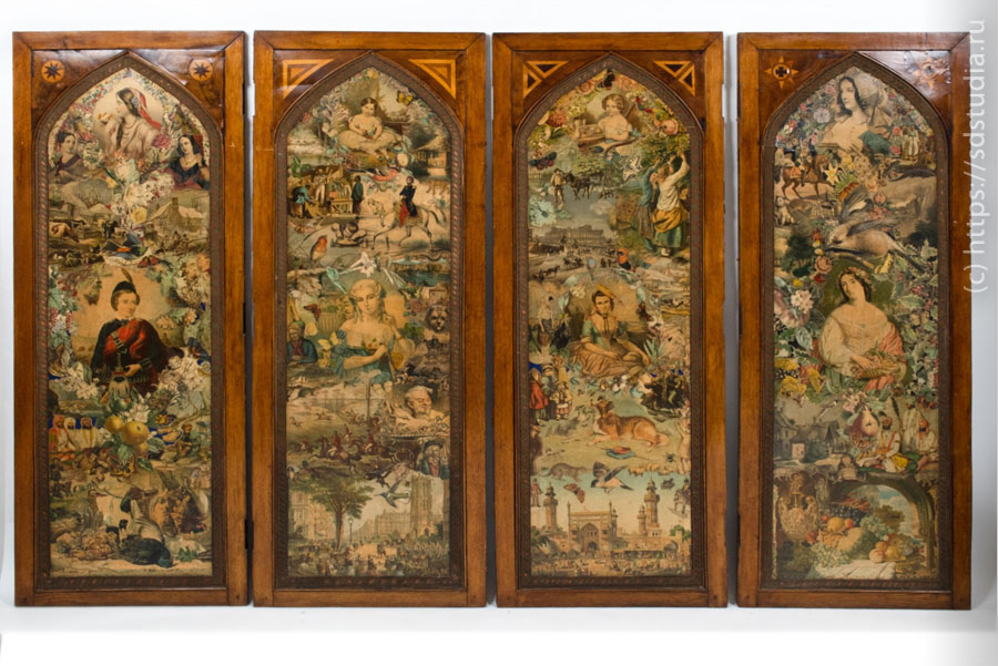 - Художественный – наклеиваемые на основу изображения мастер дорабатывает и дорисовывает, объединяя наклеенную картинку и созданный фон в единое художественное произведение.