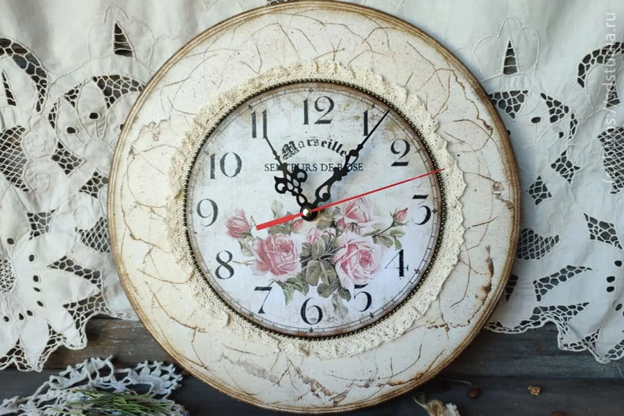 - Кракелюр – создание эффекта трещин на поверхности – имитация потрескавшегося «от возраста» лакового покрытия. Создается с помощью разнообразных кракелюрных лаков. Есть как сложные «рецепты», включающие использование двухкомпонентных лаков, так и более простые варианты «для начинающих». О работе с простым кракелюром я рассказываю в одном из своих мастер-классов.