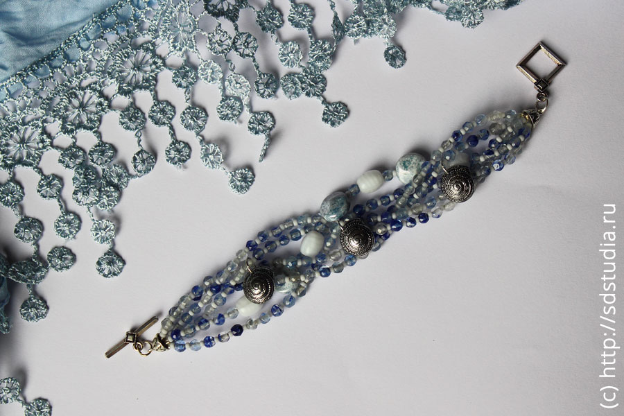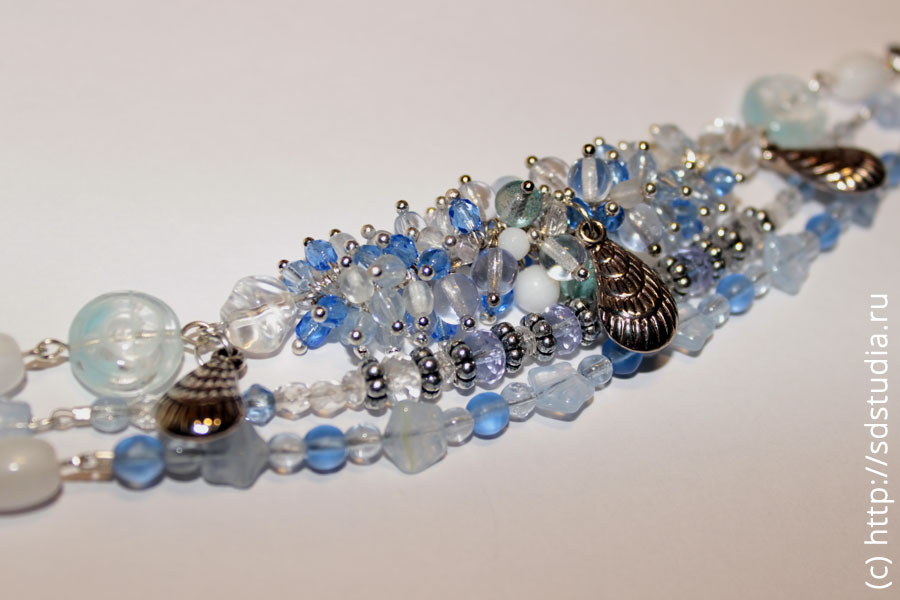 Чтобы сделать браслет на ювелирном тросике потребуются специальные инструменты, фурнитура и навыки. В качестве материалов можно использовать любые бусины и подвески, которые нанизываются на тросик. В один браслет можно собрать несколько "низок". Можно их переплести, так будет смотреться ещё интереснее. В галерее ниже - некоторые примеры моих работ для вдохновения.