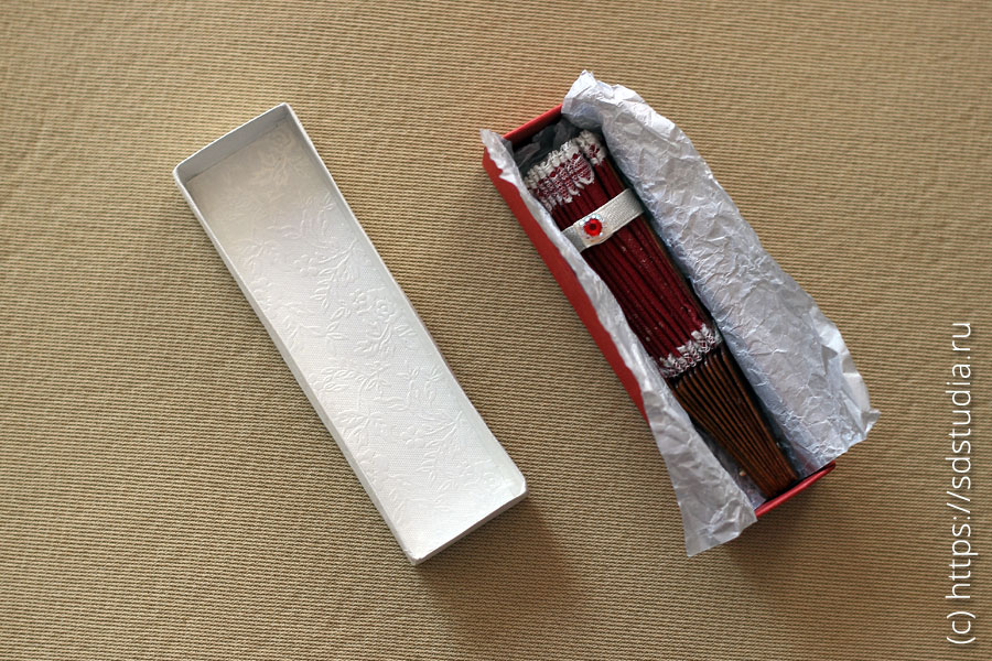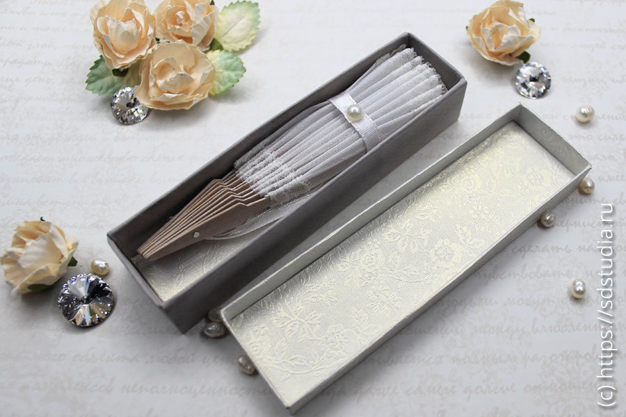 Основа кукольного веера - деревянные планки, вырезаны макетным ножом из тонких планок покупного китайского веера. Планки скреплены металлическим пином. Веер полностью "рабочий", складывается и раскладывается. Подробнее о том, как сделать подобную основу для кукольного веера, смотрите в моём мастер-классе по изготовлению веера для куклы своими руками.