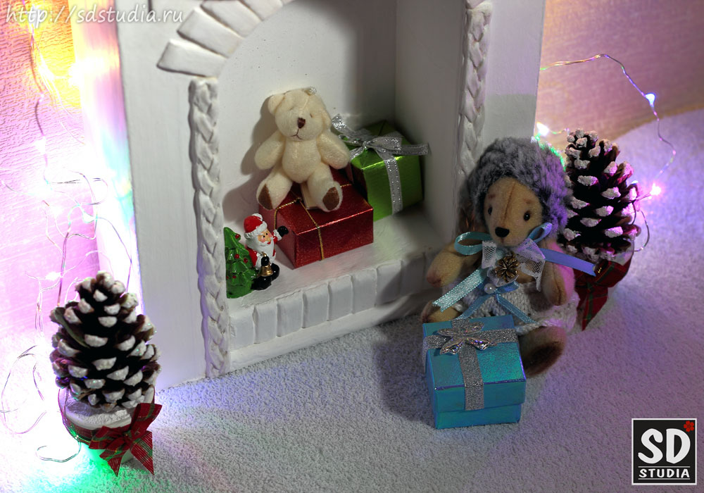 "Сборка" камина осуществлялась с помощью клея ПВА. Способ сборки позаимствовала из мастер-классов по технике "картонаж". В этой технике делают из картона потрясающие изделия. Очень рекомендую посмотреть. Вы обнаружите, что с помощью этой техники можно делать очень много интересных и красивых, а главное - полезных вещей!