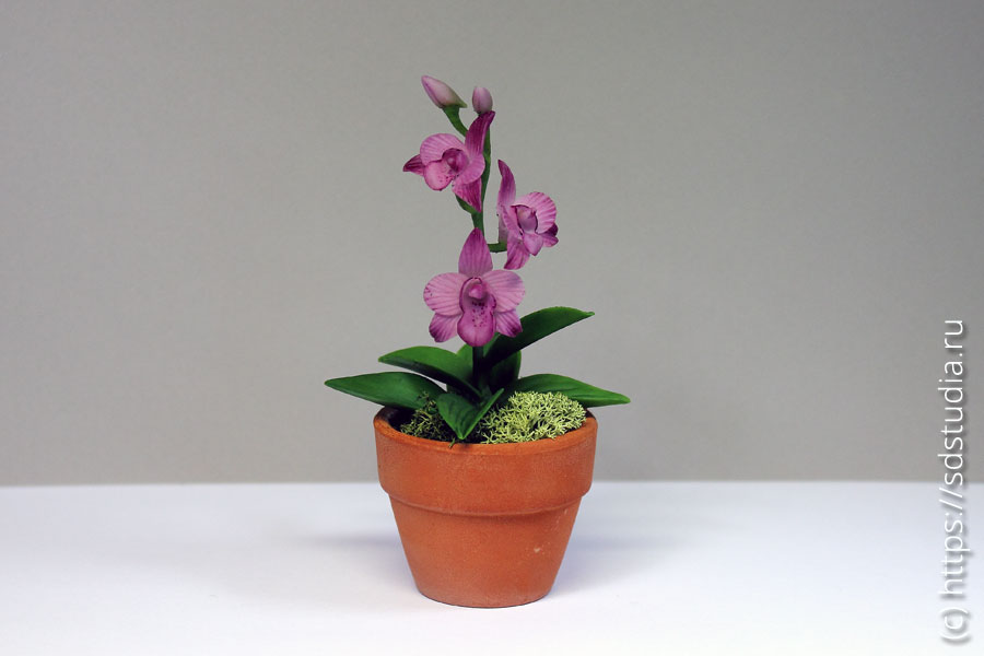 Небольшой симпатичный цветок в горшке прекрасно подойдет для создания антуража в кукольной комнате. У меня таких уже несколько. Простенький, по виду напоминающий лютик, и роскошная орхидея.